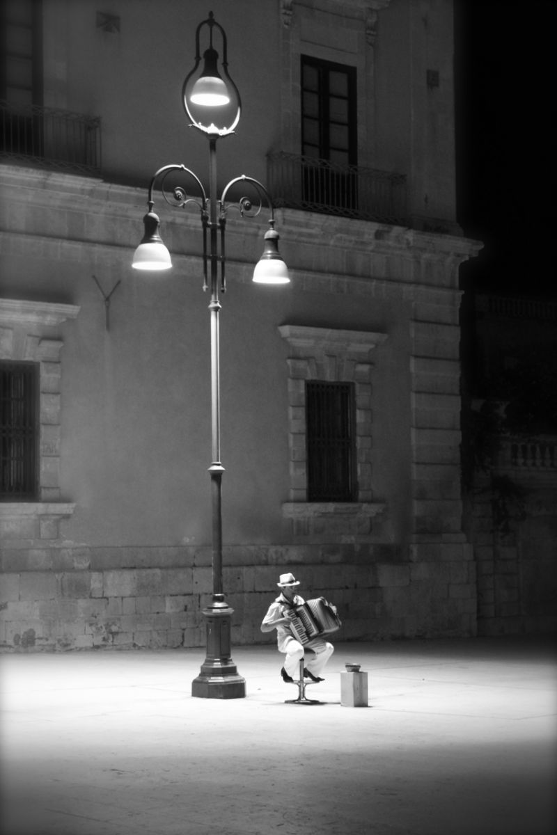 Я однажды почувствовал эту близость, увидев одинокого слепого сицилийца с аккордеоном. В свете фонаря он словно летал над площадью, растворяясь в музыке и разливая вокруг гармонию. И только потом я осознал: это ведь Сиракуза, основанная ещё в VIII веке до нашей эры, город Архимеда, город, к которому спускаются склоны Этны. Я стоял у Кафедрального собора, возведённого на месте храма Афины, рядом — церковь Санта-Лючия-алла-Бадия, где хранится «Погребение святой Лучии» Караваджо… И дух захватывало!
