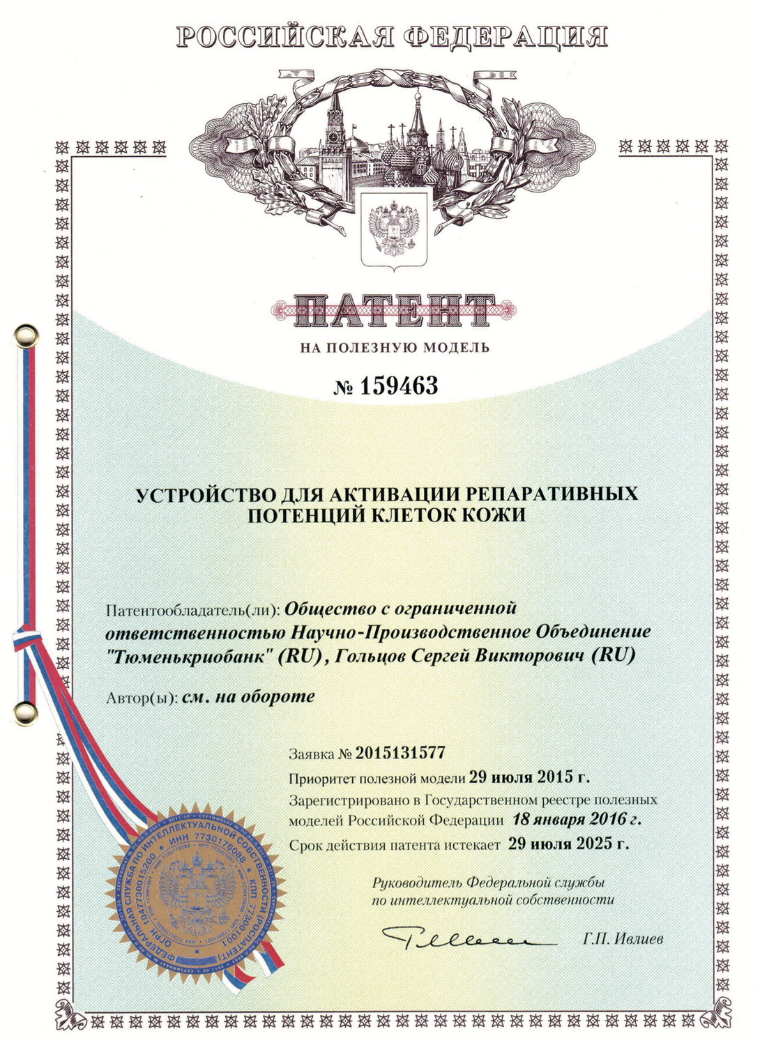 Патент на полезную модель «Устройство активации репаративных потенций клеток кожи»