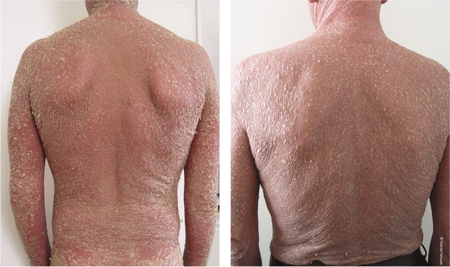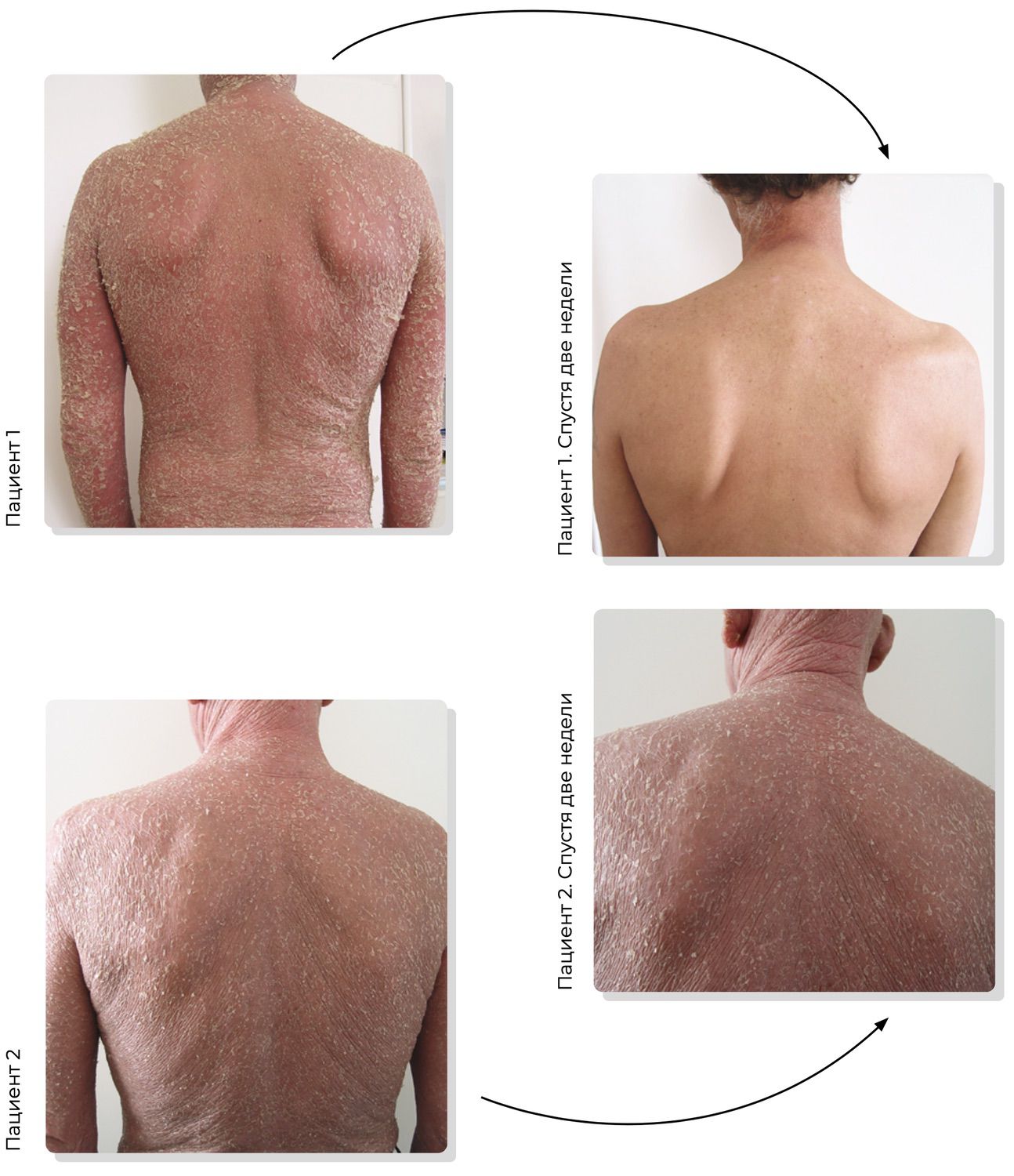 Рисунок 4. Два клинических случая. Пациент 1 (51 год) и Пациент 2 (54 года) на первичном приеме в кабинете дерматолога жалуются на высыпания на коже туловища